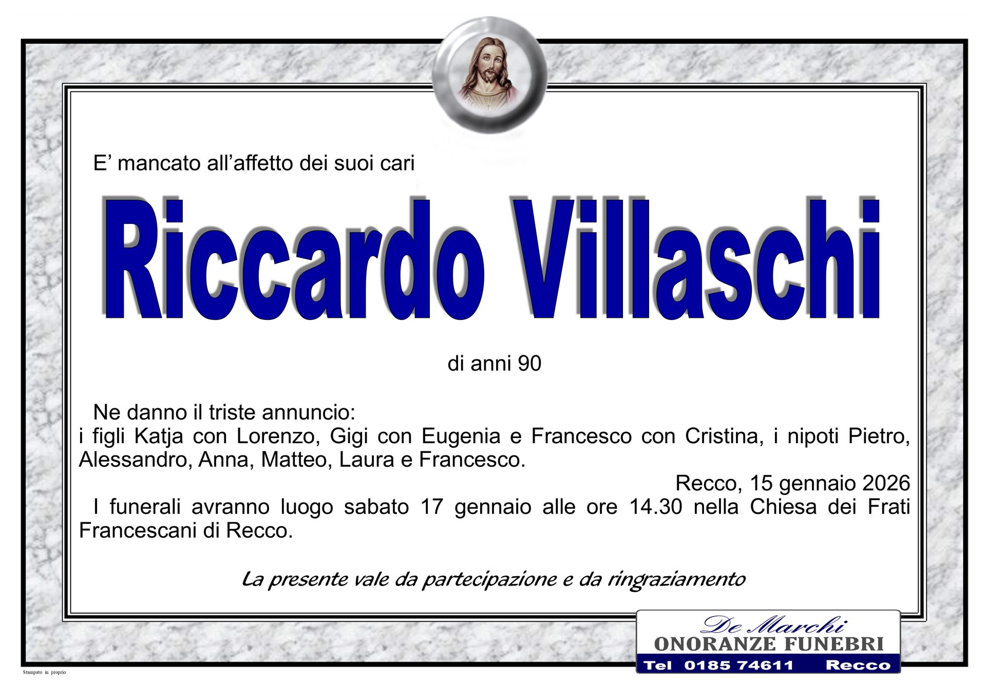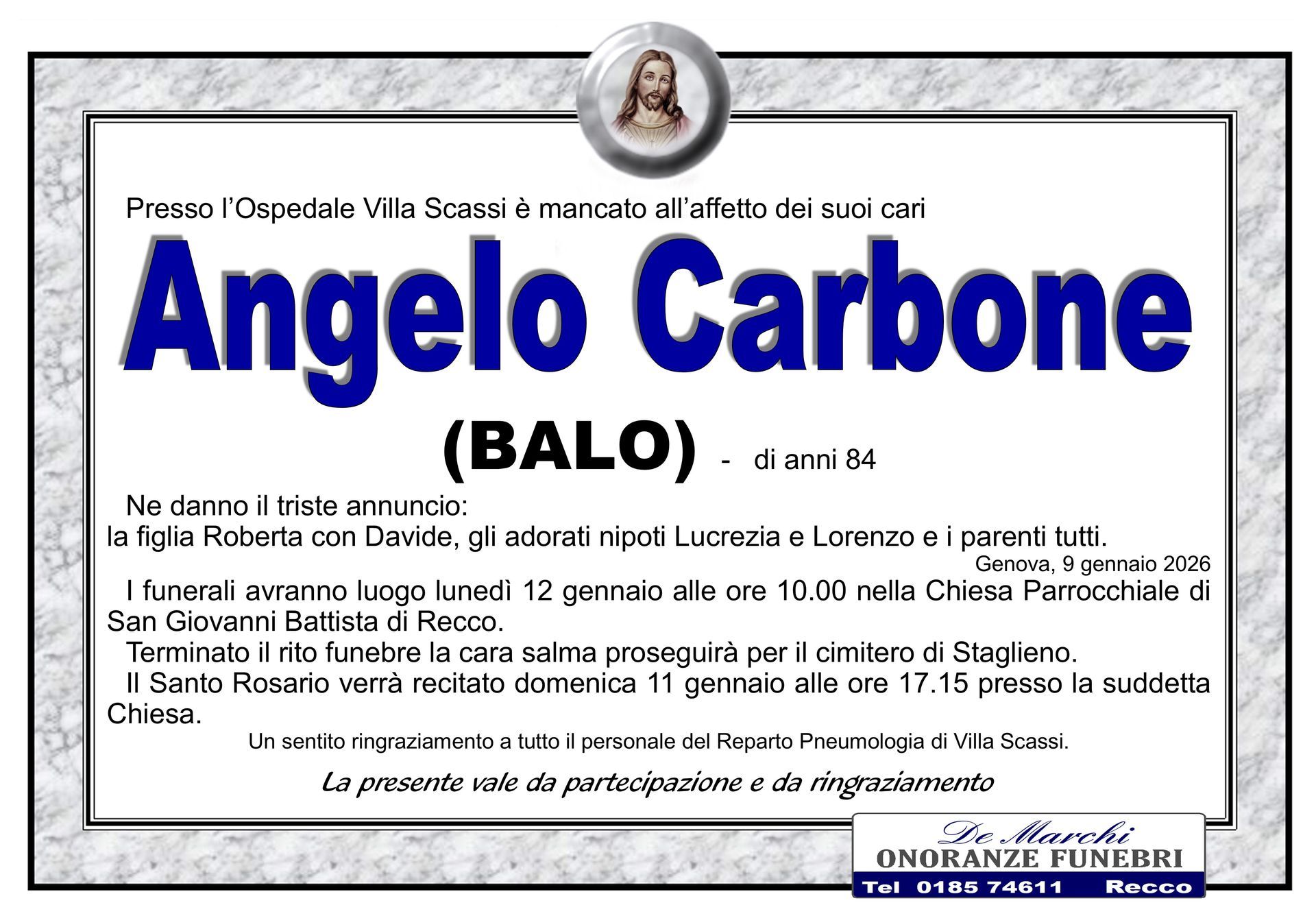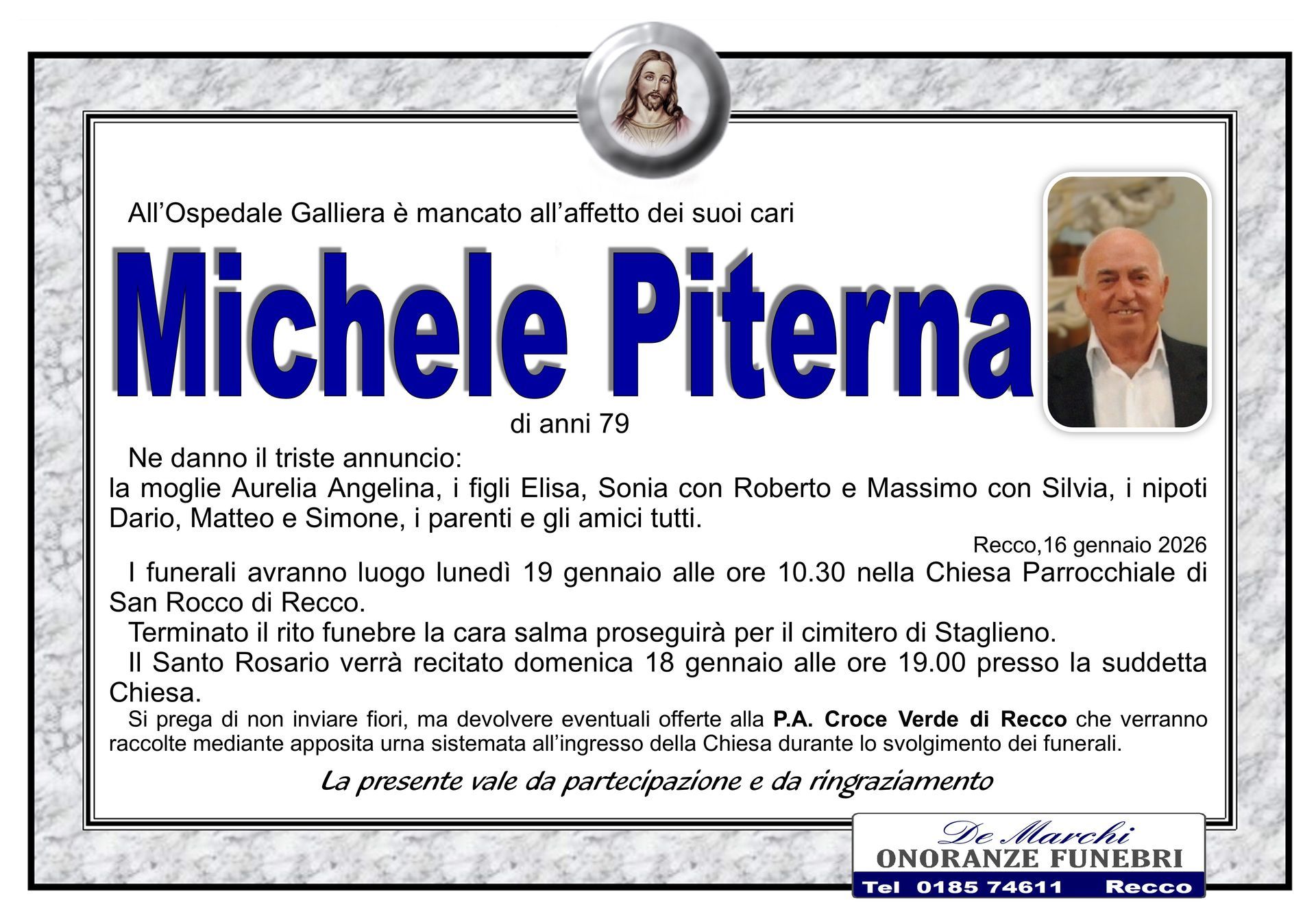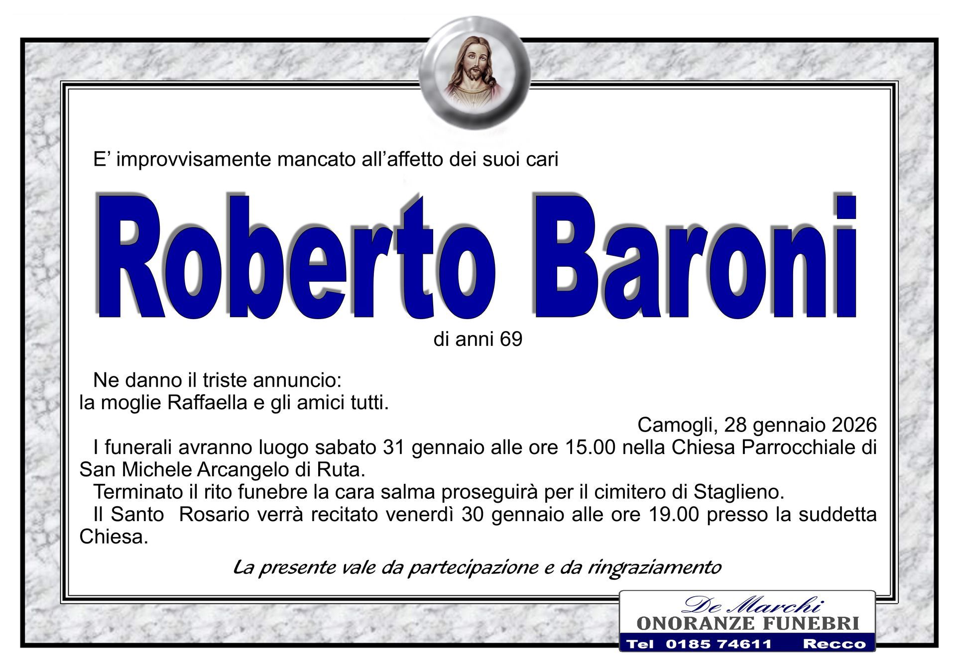 L’agenzia funebre De Marchi si trova nella città di Recco, in provincia di Genova, e opera con grande professionalità in tutti i comuni limitrofi. Grazie a una lunga e decennale esperienza nel campo dei servizi funebri a Recco, oggi il personale dell’impresa è in grado di organizzare cerimonie funebri complete e personalizzate nel dettaglio.