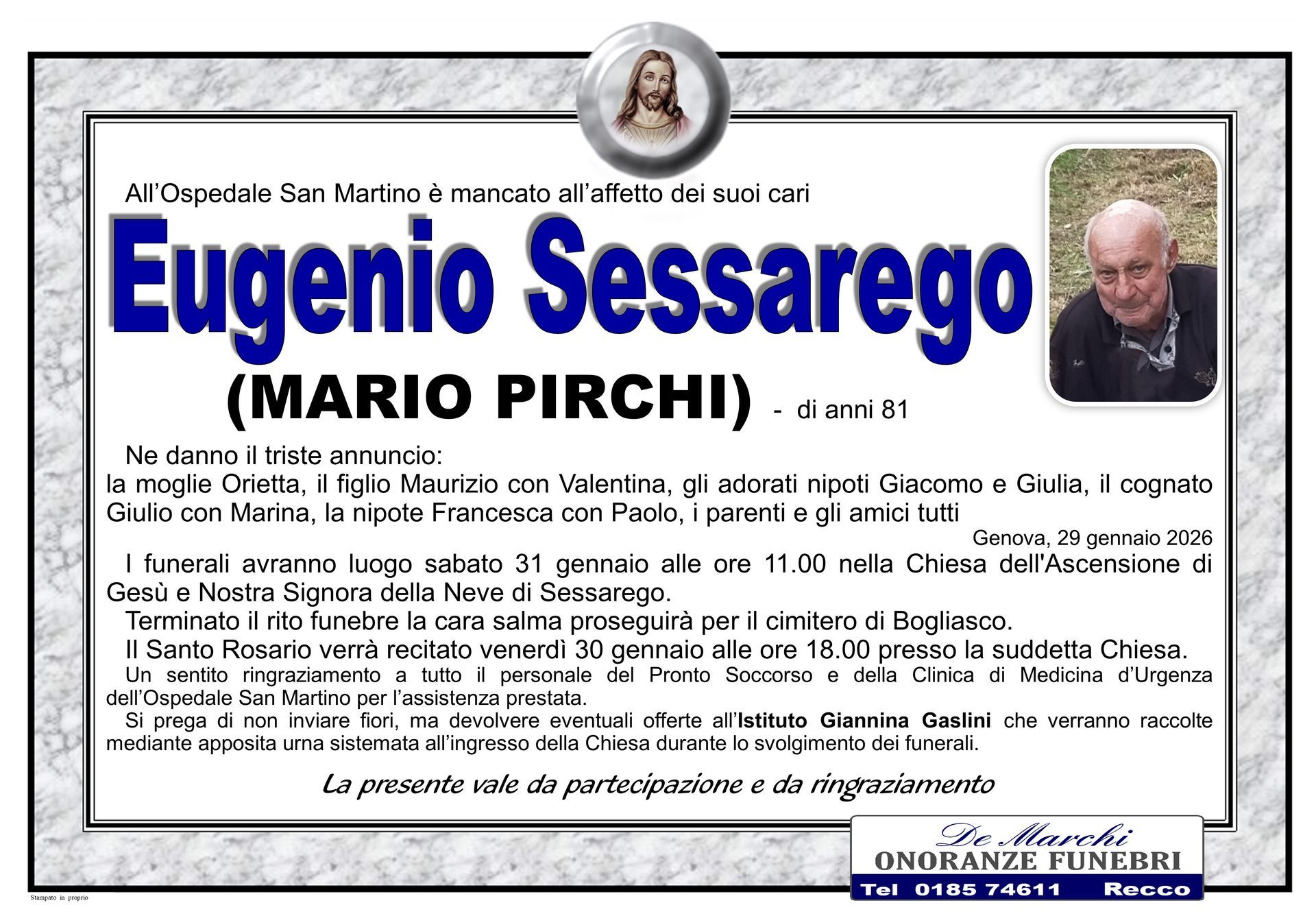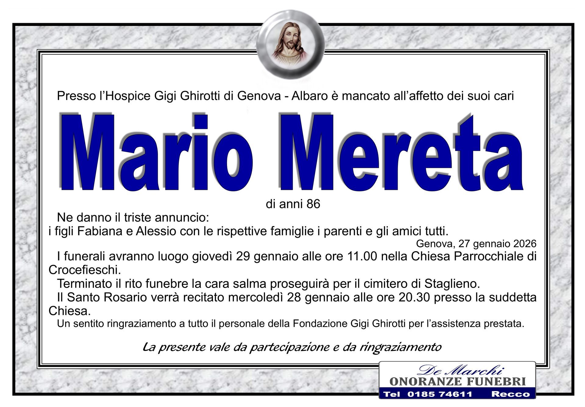 L’agenzia di onoranze funebri a Recco, in provincia di Genova, De Marchi vanta un’esperienza di circa 70 anni nell’organizzazione e nella realizzazione di riti funebri completi e personalizzati.